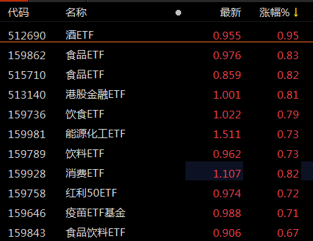 截至发稿,酒ETF(512690)、食品ETF(159862)、食品ETF(515710)等涨近1%