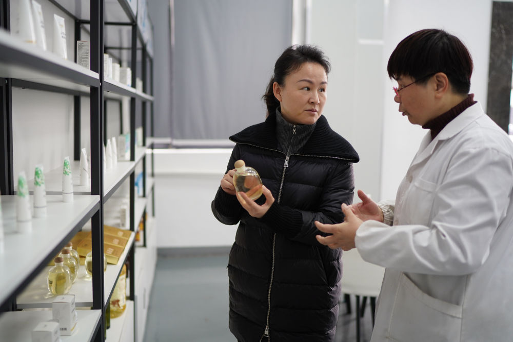 这是2月24日在位于江西赣州市章贡区的赣州哈克生物科技有限公司拍摄的茶油护肤产品。新华社记者 周密 摄