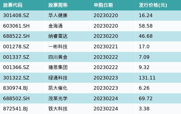 上周有10只新股发行,详情见下表: