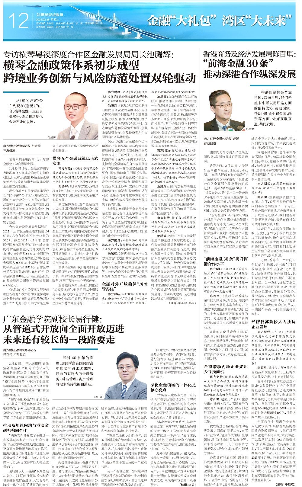 21世纪经济报道特刊丨金融“大礼包” 湾区“大未来”