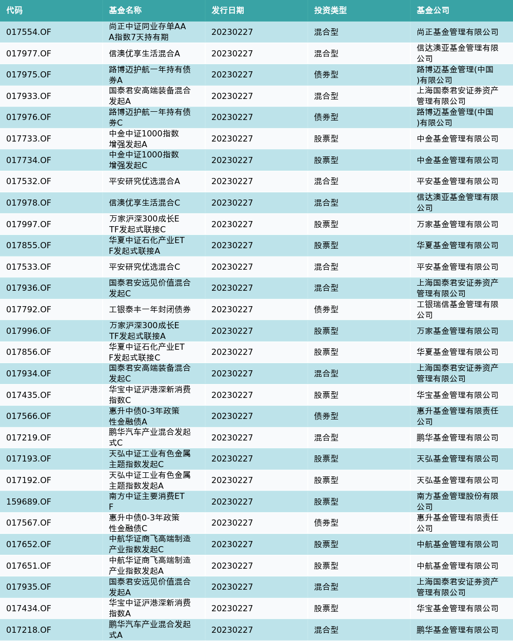 2月27日有29只新基金发行,分别为: