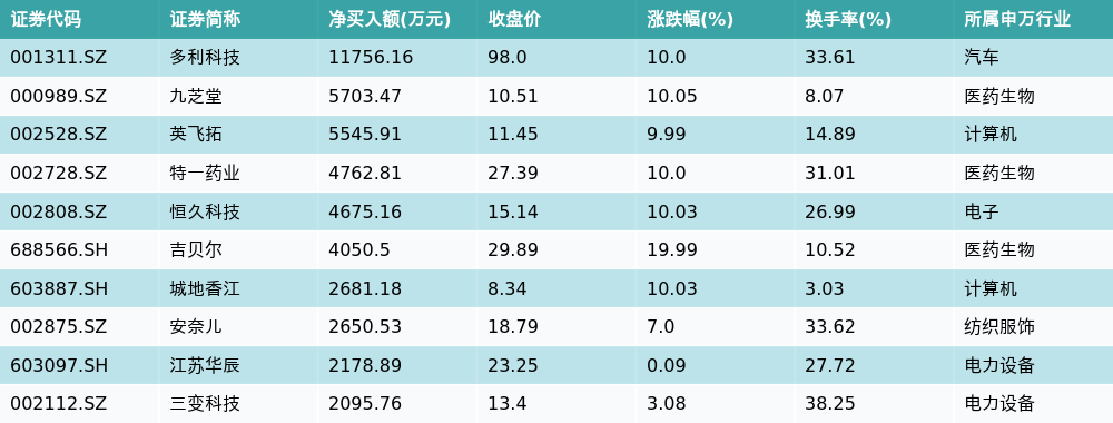 2月28日龙虎榜营业部净买入额前10详情见下表: