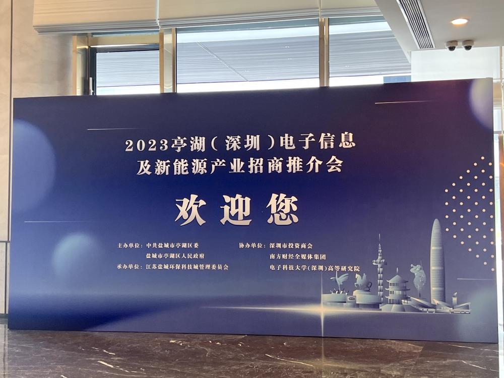 本次招商推介会由中共盐城市亭湖区委、盐城市亭湖区人民政府主办,江苏盐城环保科技城管理委员会承办,深圳市投资商会、南方财经全媒体集团、电子科技大学(深圳)高等研究院协办,旨在通过盐城市亭湖区与深圳电子信息及新能源产业的招商与产业对话,促进双方共同完善电子信息及新能源产业链布局,达到强链补链、做强制造业的共赢效果。