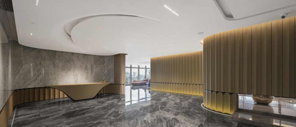 专业、商务、精英的氛围感,从走进大堂开始,建面约500㎡,约13.1米挑高空间,全石材定制的入户大堂,让合作伙伴刚进大门就看见实力。