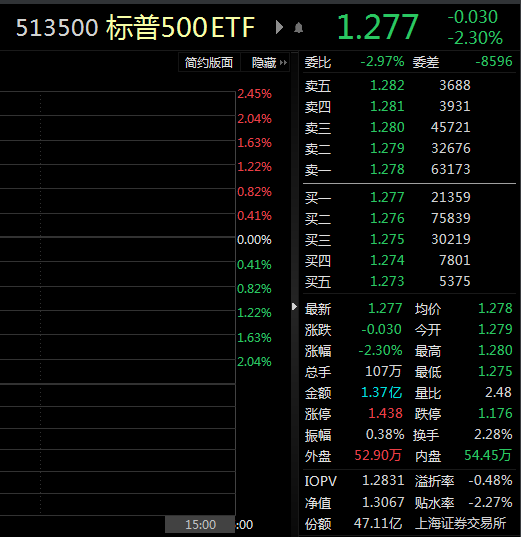受此影响,截至发稿,标普500ETF(513500)今日跌2.30%,成交额超亿元。