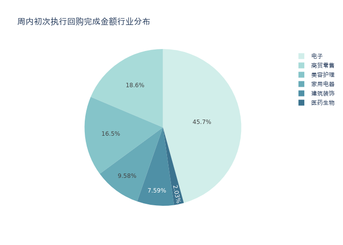 按照初次执行金额所在不同行业分布,金额最高的3个行业分别为:电子、商贸零售、美容护理,详情见下图: