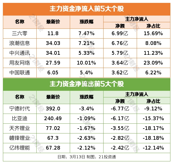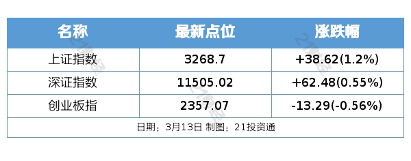 昨日(3月13日)A股收盘,沪指涨1.20%,深成指涨0.55%,创业板指跌0.56%。总体上个股跌多涨少,两市超2600只个股下跌。沪深两市今日成交额8371亿,较上个交易日放量275亿。北向资金全天净买入27.70亿元。