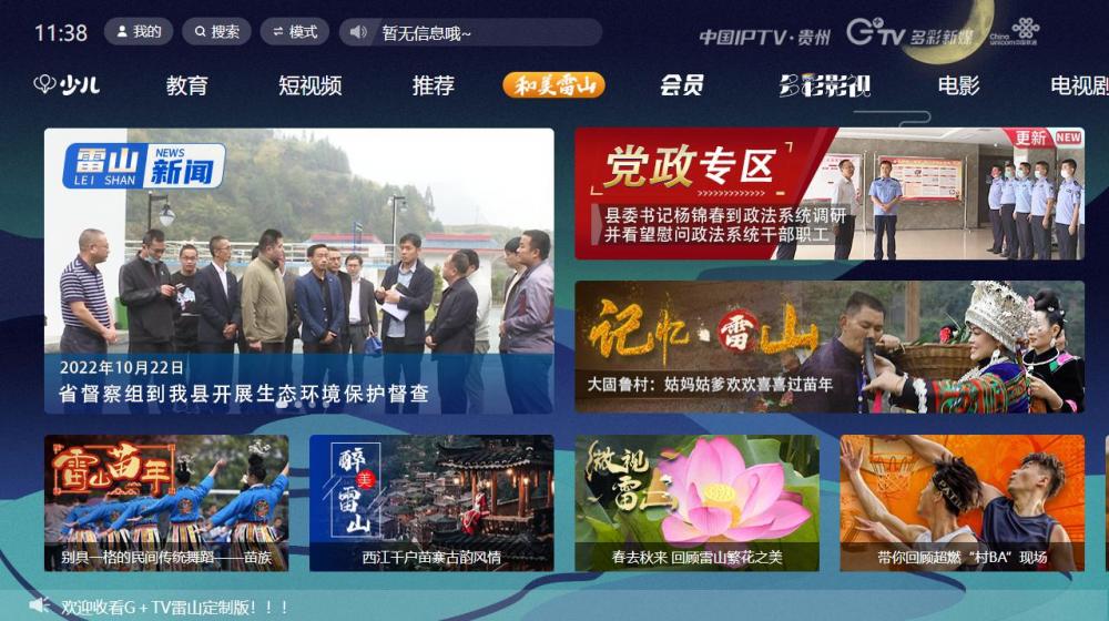 值得一提的是,多彩新媒从“大屏”走向“智慧大屏”、实现政务信息数字化升级的探索早就开始了。2019年7月,作为贵州省第一个专属于县域的交互式电视产品,“雷山定制版”正式上线。这款聚焦县级融媒体中心建设和运营的痛点,利用IPTV的技术手段,实现产品、内容、运营、数据、用户等“五个下沉”的产品,通过“媒体+政务”“媒体+服务”“媒体+商务”的共融共通,让其成为集党政、民生、文化等资讯为一体的优质平台。对内创新了党政部门宣传思想文化平台的传播模式,为县级融媒体中心提供了一个集宣传、运营为一体的自主可控的大屏平台;对外则成为一个宣传本地资讯、产业经济、文化旅游的大屏“窗口”,通过这个“窗口”,传播当地好声音,展示当地好形象。