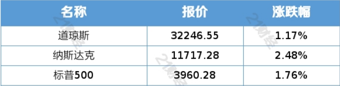 道指涨1.17%,报32246.55点,涨至3月9日以来收盘新高;