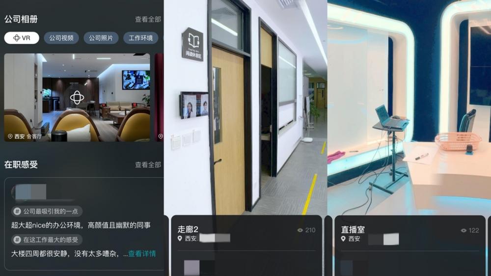 为帮助求职者增强对企业的了解,平台已全量上线VR实景功能,用户可自行用手机拍摄上传,目前已有3.1万个品牌生成超4.6万个VR实景,该应用尤其受到制造业工厂、餐饮小企业主的青睐。