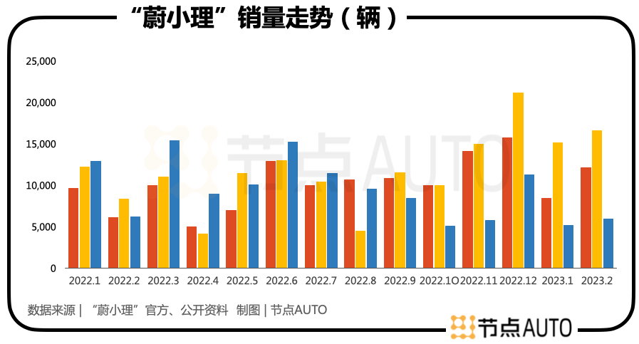 得益于L8、L9理想的月销量在去年11月首次超过了1.5万辆,是“蔚小理”之中第一个解锁这个成就的企业。同时,去年11月至今,理想的月销量一直保持在1.5万辆以上。