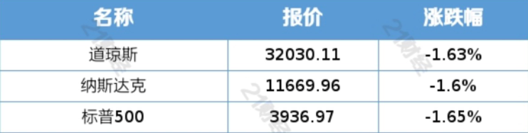 受鲍威尔“鹰派”发言,以及耶伦的否定全面提高存款保险额度的强硬表态影响,美股尾盘阶段出现快速跳水。截至收盘,道指跌1.63%,纳指跌1.6%,标普500指数跌1.65%。