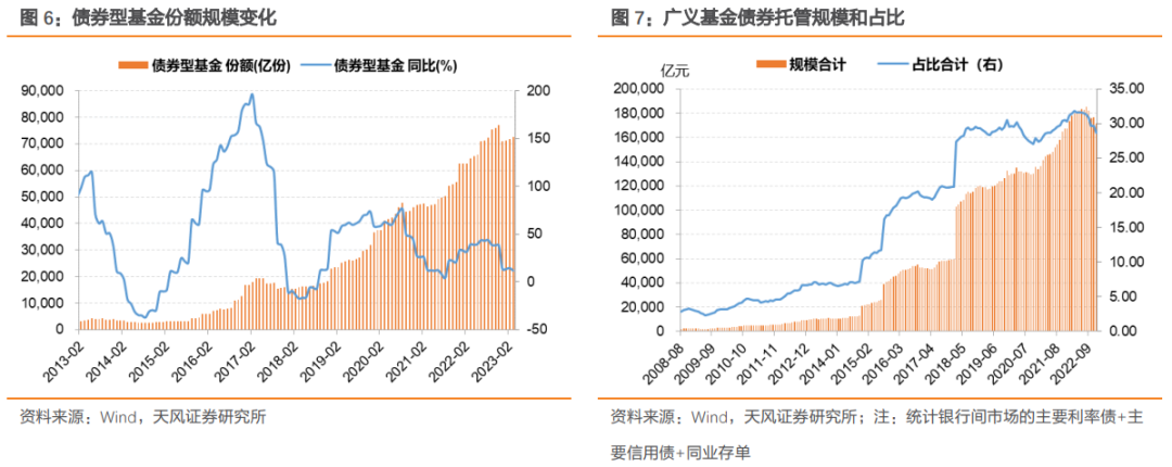 对于非银机构,特别是公募基金,很多领域都已经逐步成长为仅次于商业银行的第二大债券持有人,公募基金的扩张主要来自于机构端业务。不管是货币基金、短债基金,还是二级债基与传统中长期纯债基金,近年来一系列创新品种,基本也都是商业银行或者有关金融同业为主导。