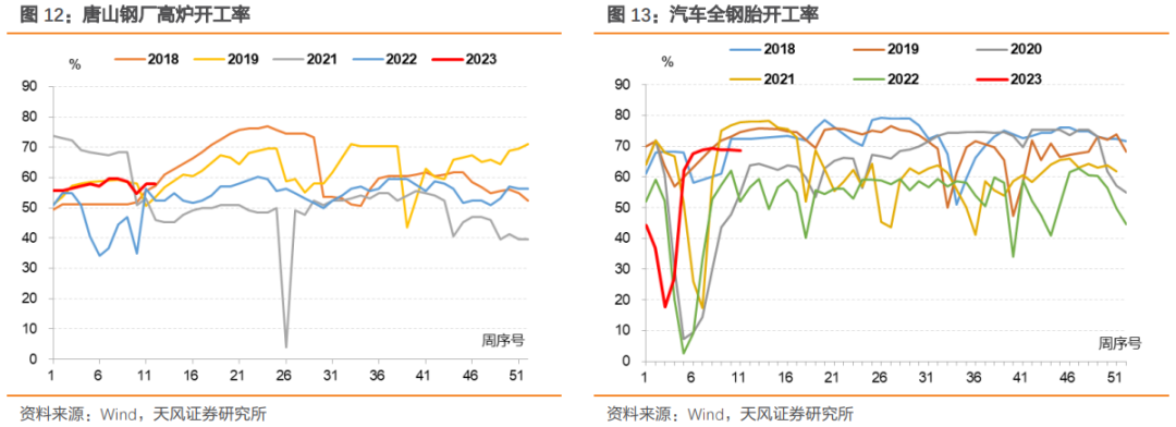 观察高频数据边际变化:工业生产方面,开工率数据并未出现明显环比走弱的迹象。