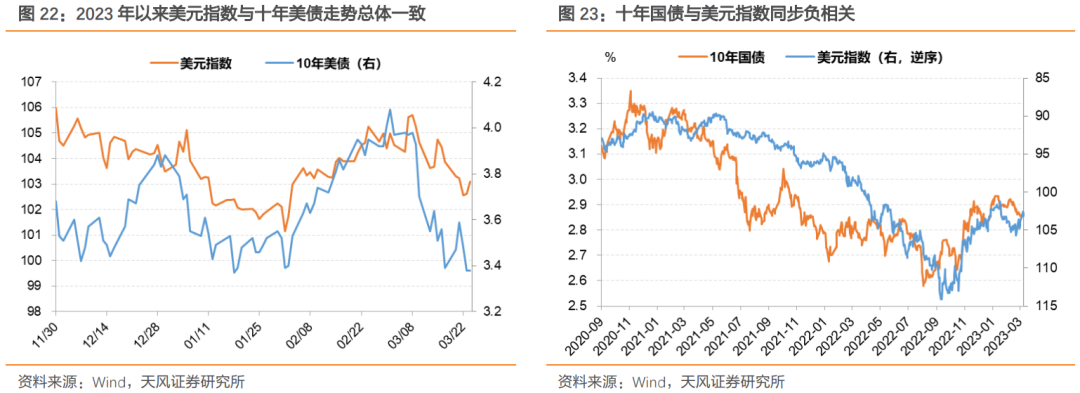 至于美元,2023年以来美元指数与十年美债走势总体一致,说明两者交易了同一个底层逻辑,就是围绕美国宏观图景变化带来的货币政策预期变化。