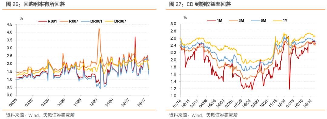 本周回购利率和CD利率均有所回落。