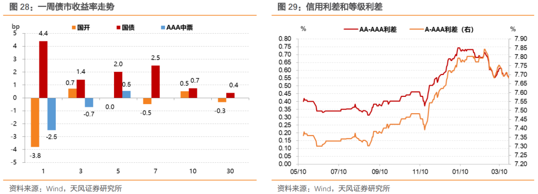 国债各期限收益率不同程度上移,短期限信用收益率略下行、信用利差收缩。