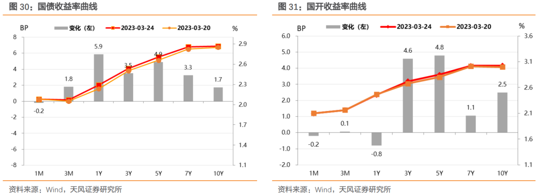 周一(3月20日),上周五央行宣布于3月27日降准0.25个百分点,叠加上周末瑞信事件带动避险情绪,当天债市收益率下行,10年期国债收益率收于2.85%,较前一日下行0.98bp。