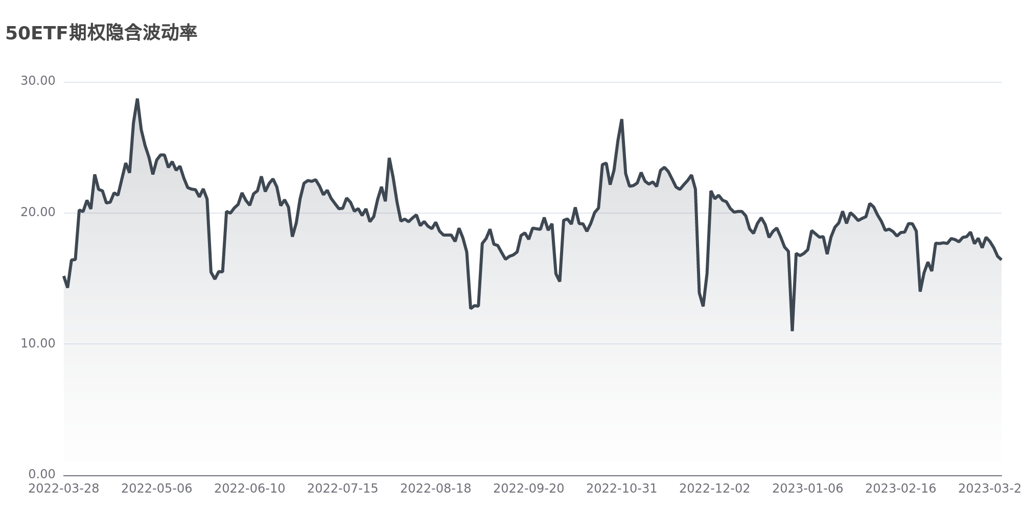 今日该指标值为16.42,目前该指标处于近一年较低区间,说明投资者认为未来市场波动处于较低水平。50ETF期权波动率(原中国波指iVIX,也称作恐慌指数),指数与上证指数存在负相关性,但不绝对。指数点位越高,代表投资者预期后市波动程度愈加激烈;指数点位越低,代表预期后市的走势愈加平稳。VIX在剧烈波动处有聚集的特征,而这些波动聚集处通常是在市场剧烈波动,或指数的低点和高位处。那么,在股指高位处的 VIX 聚拢高企意味着市场风险的集中;而股指快速下跌处的 VIX 高企意味着市场风险的释放。若VIX指数在股市快速下跌时持续的高企并突破极值,这可能预示市场的重大转折——风险已经释放到极致,股市将开始企稳并上扬。