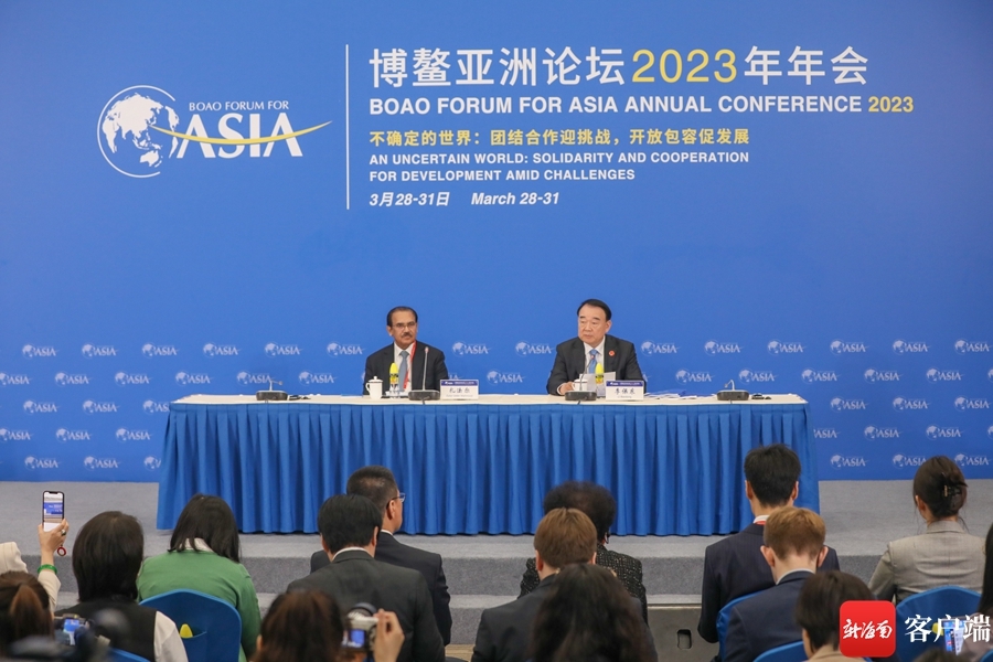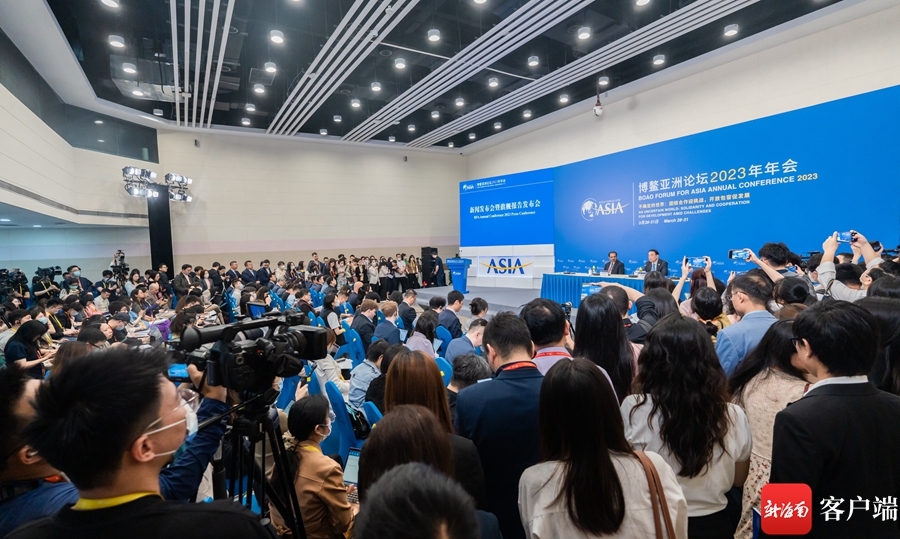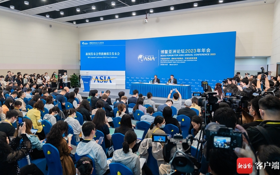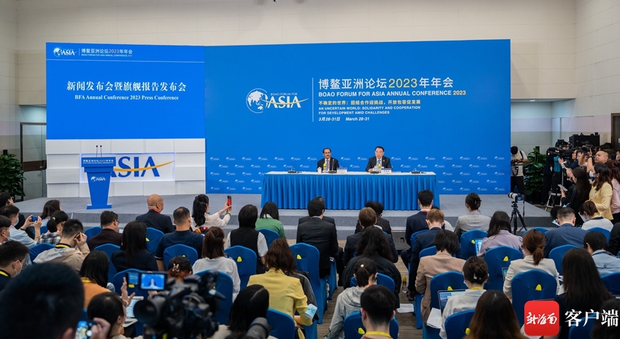 (3月28日上午,博鳌亚洲论坛2023年年会新闻发布会暨旗舰报告发布会在博鳌亚洲论坛新闻中心举行。)