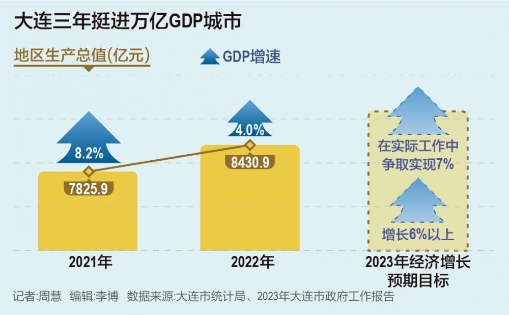 大连市市长陈绍旺在政府工作报告中提到,2023年是实施“十四五”规划和实现“三年过万亿”目标承上启下的关键之年。