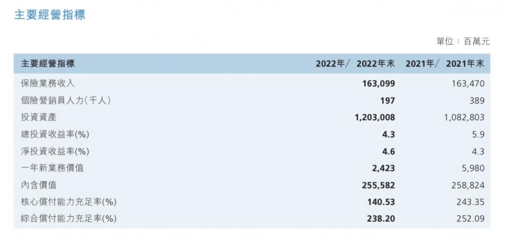 (图片信息:新华人寿2022年业绩;图片来源:企业公告)