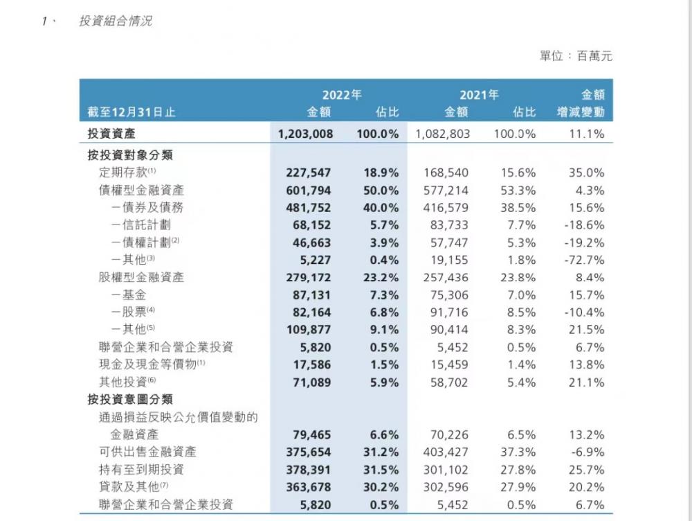 投资端,2022年新华人寿投资组合总投资收益率为4.3%,净投资收益率为4.6%。债权型金融资产投资方面,投资金额6017.94亿元,在总投资资产中占比为50.0%,较上年末减少3.3个百分点。股权型金融资产投资方面,投资金额2791.72亿元,在总投资资产中占比为23.2%,较上年末减少0.6个百分点。