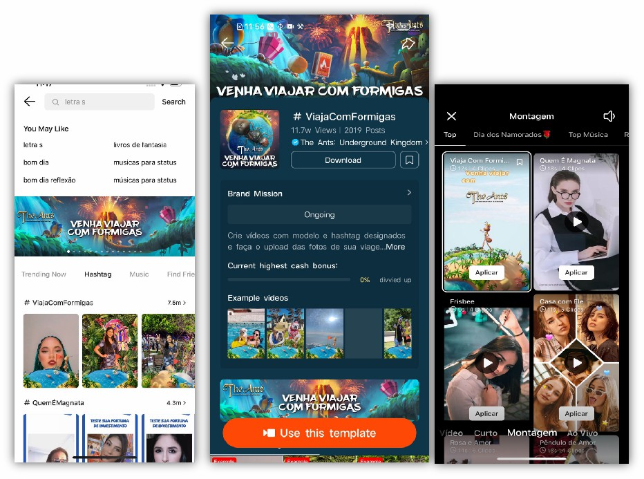 这款SLG游戏出海最成功的两个市场一个是美国,另一个便是巴西。巴西市场中,营销公司Nativex与Kwai合作,发起线上挑战的标签,依靠UGC内容,让这款游戏迅速在当地传播,并实现用户转化。