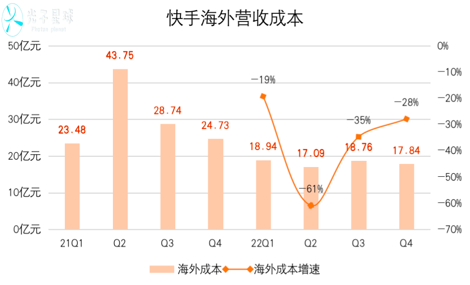 马宏彬在内部明确提到“打好基本功,花好每一分钱”,从财务数据的情况看,似乎在他赴任之前已经是这样了,快手海外营收成本实际上早在去年Q2就已经明显回落。
