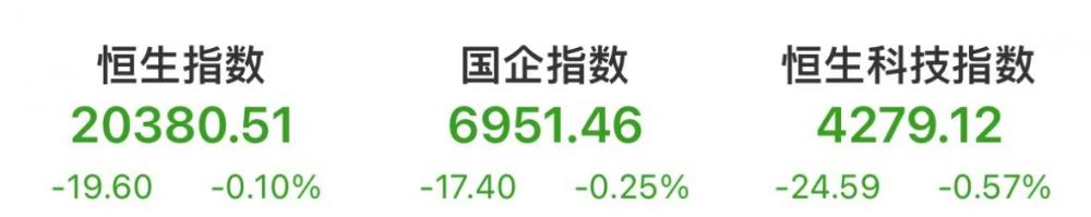 今日(4月3日),港股三大指数盘中集体飘绿,截至发稿,恒生指数跌0.1%,国企指数跌0.25%,恒生科技指数跌0.57%。