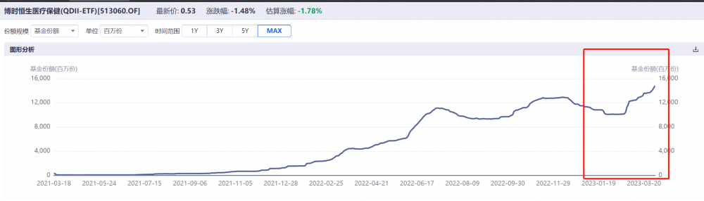 截至3月31日,恒生医疗ETF(513060)份额再创历史新高,总份额为147.98亿份,较前一交易日增加3亿份,较年初114.83亿份增长28.87%。