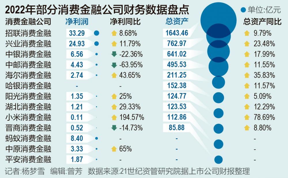上市公司2022年财报正在陆续发布。据21世纪经济报道不完全统计,截至目前已有13家消费金融公司披露财务相关数据。