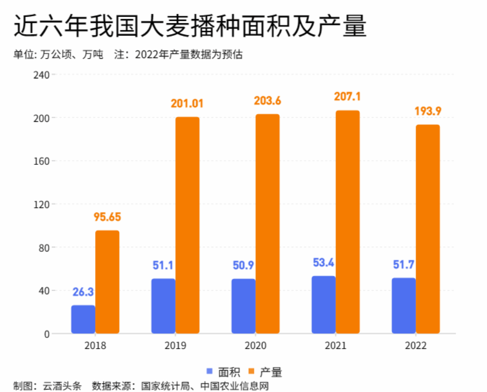 2022年进口大麦价格的升高,无疑增加了国产啤酒的生产压力,也一度引发关于国产大麦增产的进一步讨论。