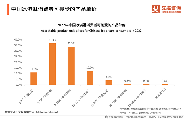 据艾媒咨询数据显示,消费者对雪糕冰淇淋单价的接受度普遍在3~9元之间,占比为70.9%;12.3%的消费者可接受10~15元;单价超过20元的可接受度极低。