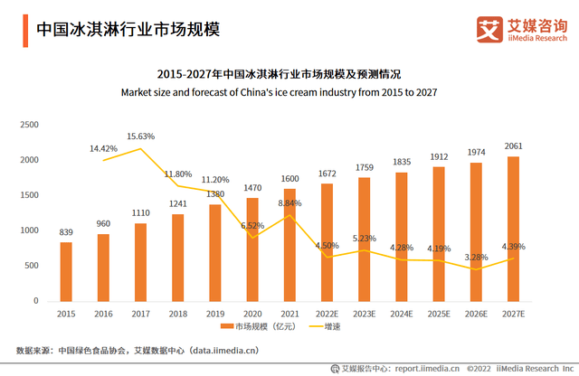 艾媒咨询数据显示,目前中国冰淇淋市场规模已达千亿水平,预计2027年将突破2000亿元,对钟薛高来说,开拓平价雪糕才有可能分走这千亿市场的大块蛋糕。