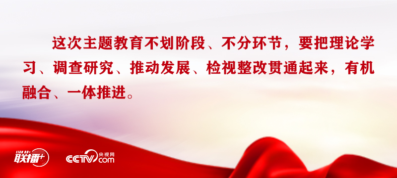 总书记强调,我们要以这次主题教育为契机,加强党的创新理论武装,不断提高全党马克思主义水平,不断提高党的执政能力和领导水平,为奋进新征程凝心聚力,踔厉奋发、勇毅前行,为全面建设社会主义现代化国家、全面推进中华民族伟大复兴而团结奋斗。