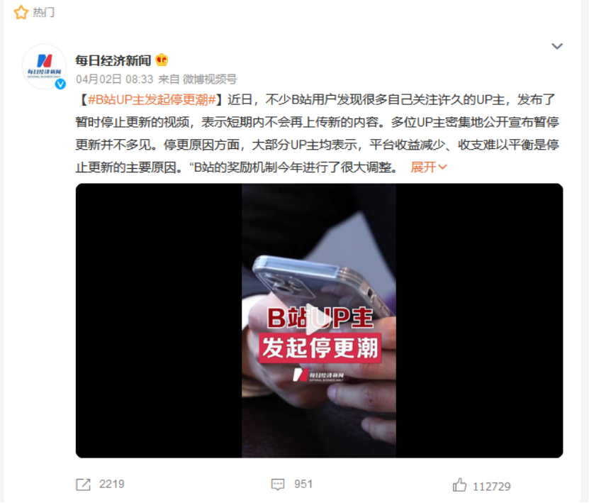 把最近和B站有关的热搜连起来看,不免有种分裂的感觉。毕竟就在不久前,B站还因为亏损和“给UP主分了91亿元”而冲上微博热搜,听起来有种“只要你开心,我怎样都好”的备胎即视感。