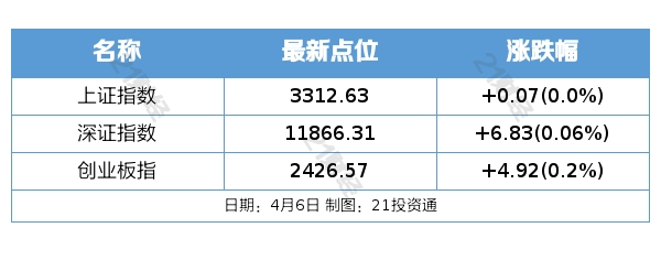 4月6日,A股三大指数全天低开高走。截至收盘,上证指数平收,深证成指收涨0.06%,创业板指收涨0.2%。当天,两市成交额11933亿元,连续3日破万亿,较上一交易日缩量约1313亿元。两市股票呈现跌多涨少的态势。