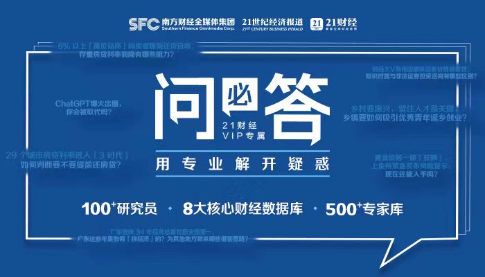 “问必答”是21财经客户端以粤港澳大湾区(广东)财经数据中心和南财智库为依托,针对VIP用户专属打造的问答服务。用户提出的每一个财经问题,“问必答”都将通过数据库筛选匹配至相应的专业人士,邀请他们给出精准、合规的参考答案。