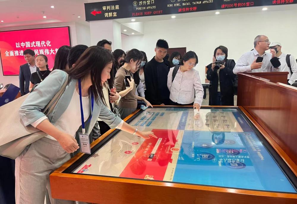 开放日活动还安排了南沙法院诉讼服务中心、警营文化中心及多元解纷中心的参观互动环节。在诉讼服务中心,南沙法院多语种导诉、中英双语繁简双体诉讼指引手册及跨域立案功能等多项涉外诉讼服务,赢得了律师代表、企业代表的点赞。广东省人大代表罗家泽是一家外资制药企业的生产主管,他表示,南沙法院为内外资企业提供平等的法律保护与优质的司法服务,让自己对企业在南沙的发展更有信心、更加安心。