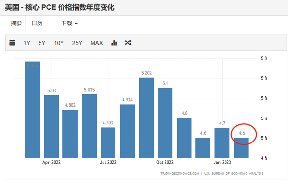 上周PCE数据公布,2月美联储最“青睐”的通胀指标—核心PCE物价指数同比涨4.6%,低于市场预期和前值的4.7%,还创下了2021年10月以来的最低纪录。