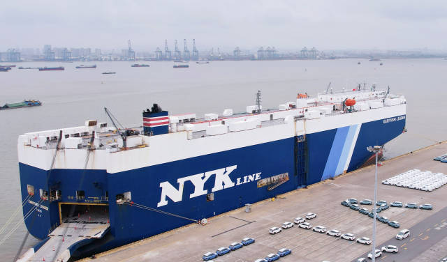 国产新能源汽车在广州南沙口岸即将出口。石磊 关悦 摄