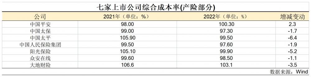 七家上市财险公司综合成本率除中国平安外均有不同程度的下降