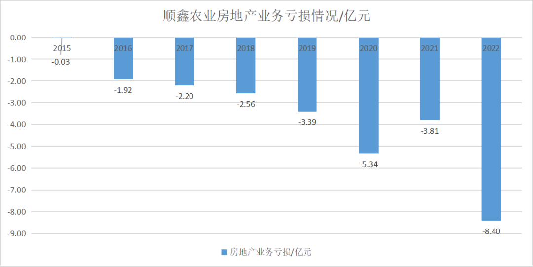 赚钱的业务利润少了,亏钱的业务却越亏越多。2022年顺鑫佳宇的亏损金额达到了8.4亿元,创下新高。