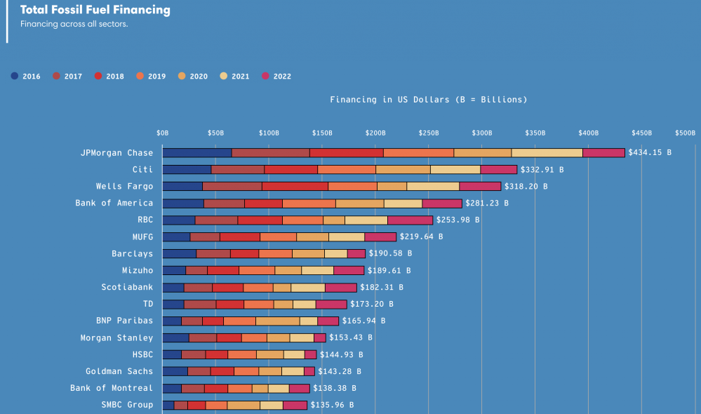 (银行对化石燃料融资,图源于《银行巨头与气候乱局2023》报告)