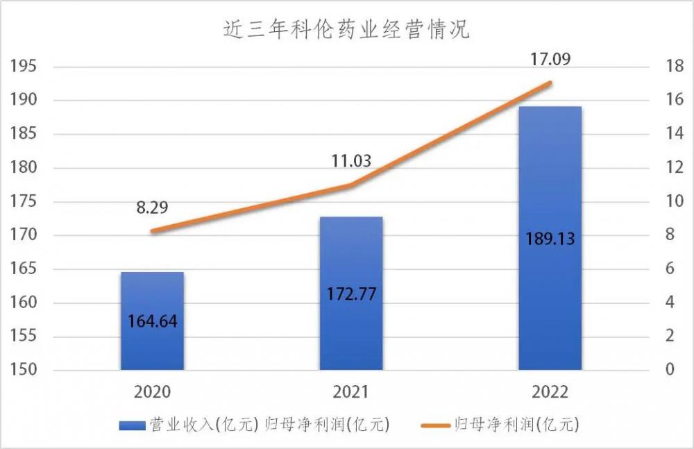 2020年—2022年,科伦药业营业收入分别为164.64亿元、172.77亿元、189.13亿元,复合年增长率7.18%;实现归母净利润8.29亿元、11.03亿元、17.09亿元,复合年增长率达到43.58%。