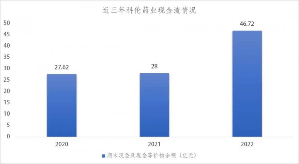 2021年年末,科伦药业现金及现金等价物余额为28亿元,2022年期末余额达到46.72亿元,增加金额18.72亿元,增长66.84%;净增长额较2021年的0.38亿元达到4785.76%。