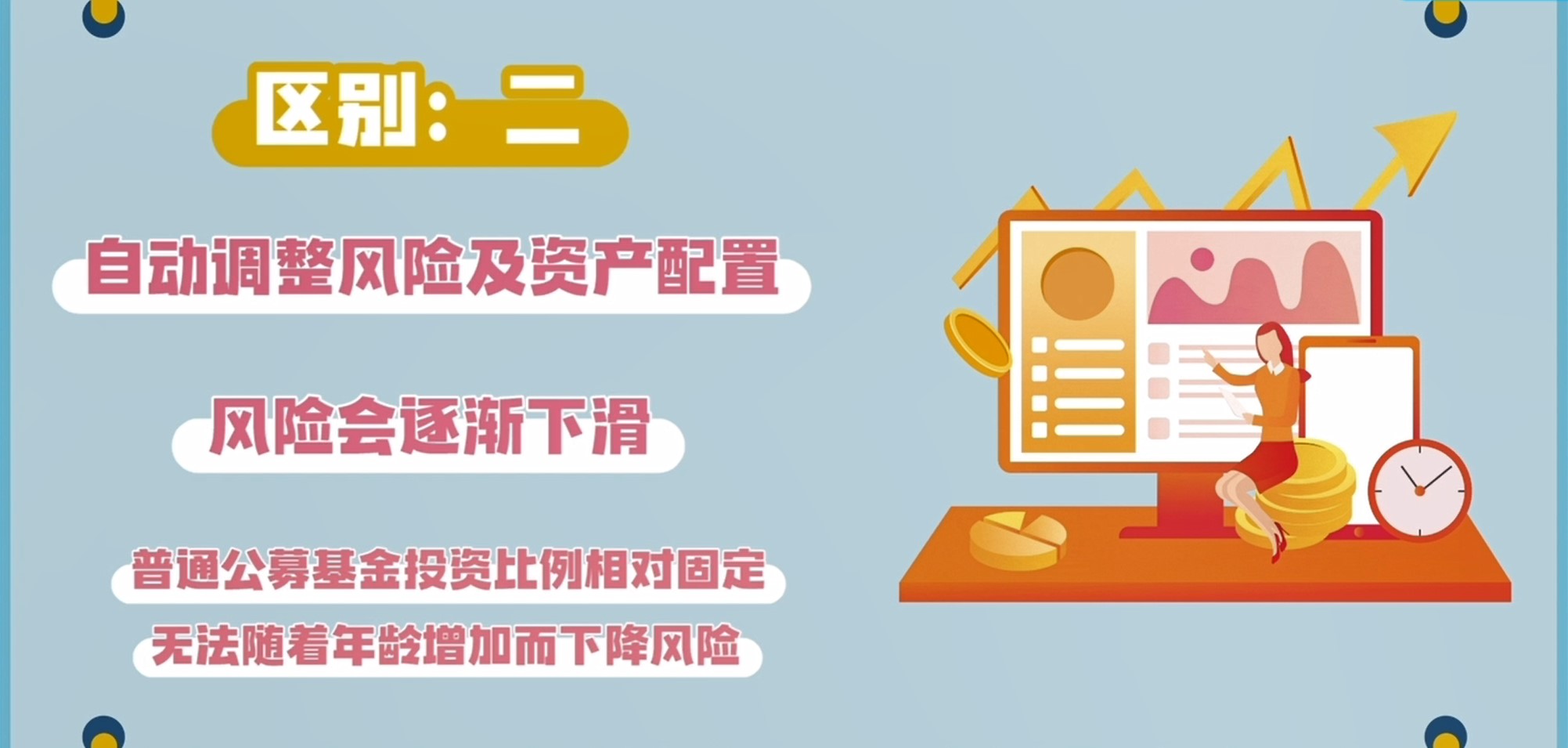 而普通公募基金产品的权益类或固收类投资比例通常是相对保持不变的,无法与投资者随年龄增加而下降的风险偏好相匹配。