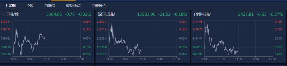 市场早盘震荡调整,沪指相对偏强。截至上午收盘,沪指跌0.02%,深成指跌0.18%,创业板指跌0.27%。