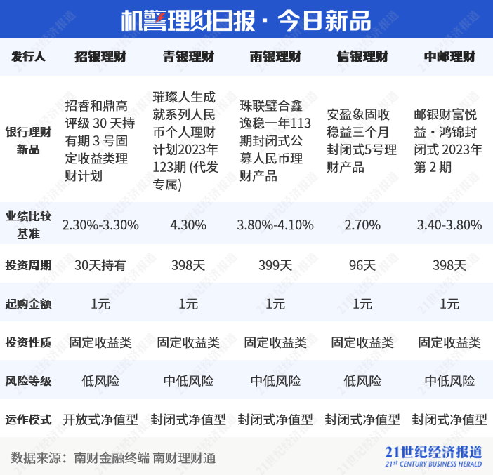 《机警理财日报》是南财理财通、21世纪经济报道旗下投资理财、财富管理特色栏目,旨在帮投资者守好“钱袋子”,并创造更高的行业价值。